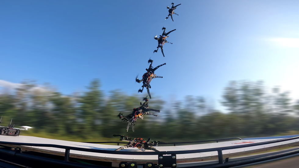 In this demonstration, we demonstrate a new system that allows drones to safely land on moving vehicles up to 110 km/h. Our approach, which combines lightweight shock absorbers and reverse thrust, dramatically expands the landing area, making it more robust to wind, timing and vehicle movement. This breakthrough opens up the possibility of reliable high-speed landings for drones in real-world situations.